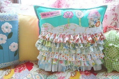 I LOVE these handmade pillows that I found on Etsy. They're not actually for sale; just samples of what can be made with a scrap bag of vintage fabrics. (They do sell those! :-)) I think these are the neatest things............they make me jealous and happy at the same time. ;-)